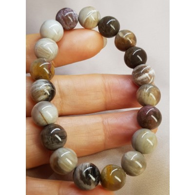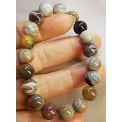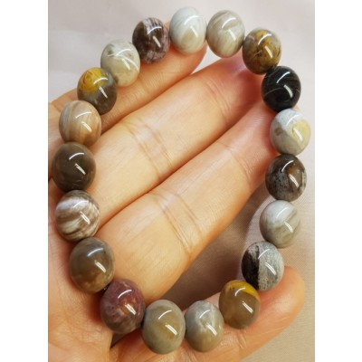 **아프리카 마다가스카르 산 광택과 색감이 뛰어난 나무화석10mm 팔찌입니다.